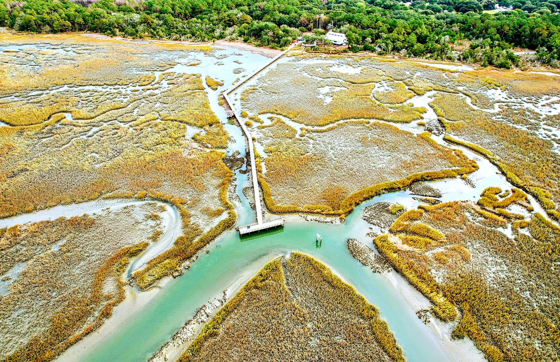 Breath of Gaia presents an aerial view of the coastal marsh at Huntington State Park in Murrells Inlet, South Carolina. From above, the landscape reveals itself not as scenery, but as a living system. The winding waterways functions like lungs, breathing life through the march, while the rigid geometry of the boardwalk cuts across the frame - an unmistakable marker of human presence.